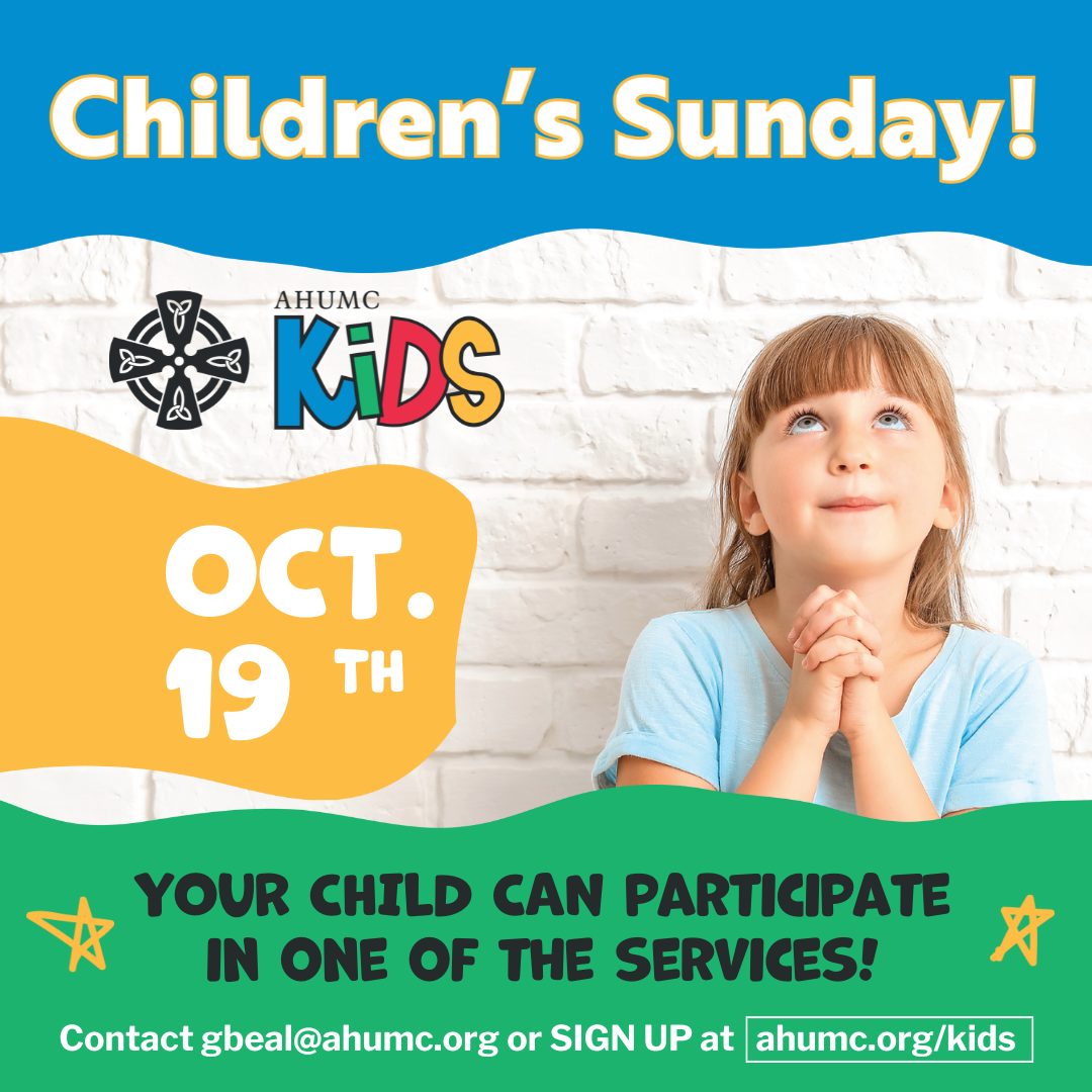 AHUMC Kids is happy to host another Children's Sunday on October 19, which is a day that celebrates your kids!