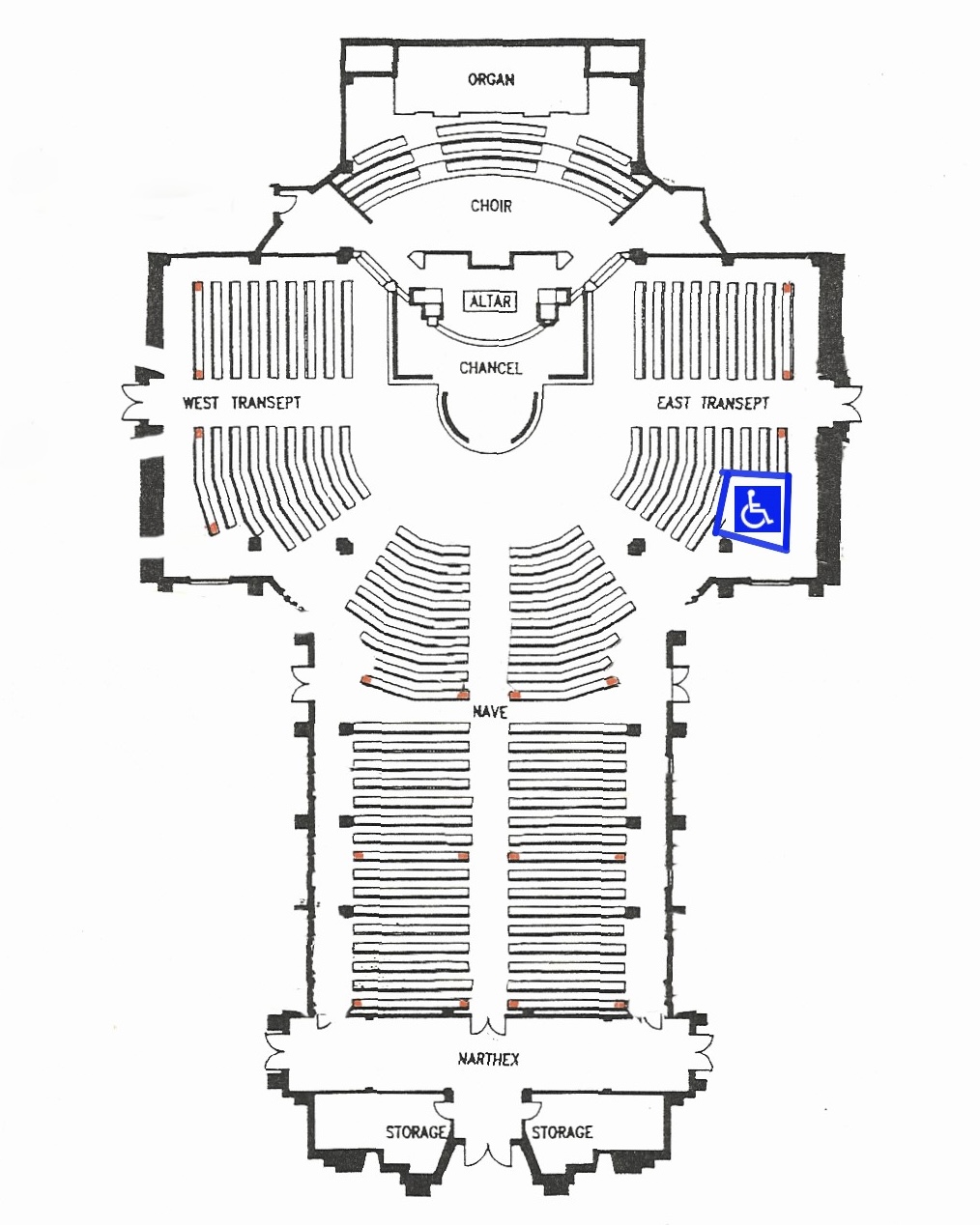 On March 30, a new accessible seating section will be opened in the East Transept of the Sanctuary, just inside the East entrance doors.
