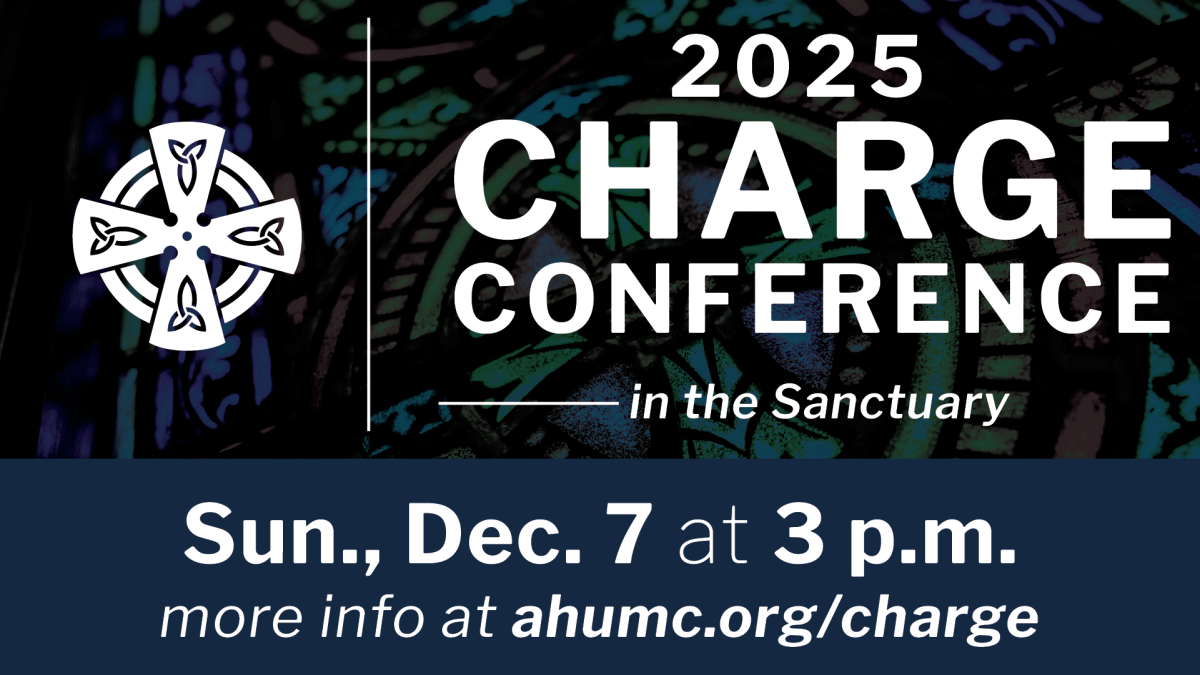 Our annual Charge Conference will be held on Sunday, December 7 at 3 p.m. in the Sanctuary.
