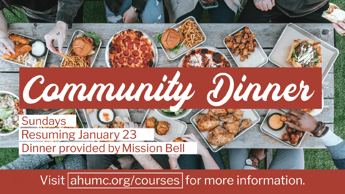 Each week, a complete dinner is available from Chef Colin Bryant of Mission Bell for a suggested donation of $5. Join us for this time of connection as we share the table together before or after Sunday classes and activities. Childcare is provided during the meal and Sunday evening classes and activities.