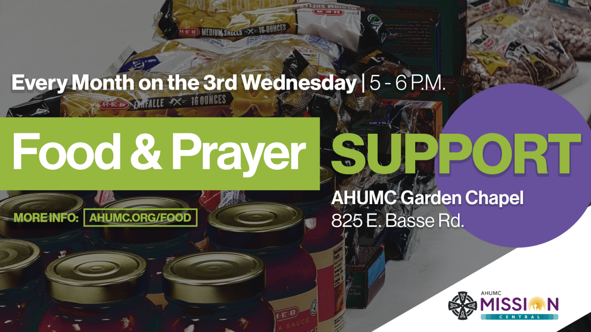 Mission Central volunteers and staff offer bags of food items and prayer in the Garden Chapel drive-through on the third Wednesday of each month.