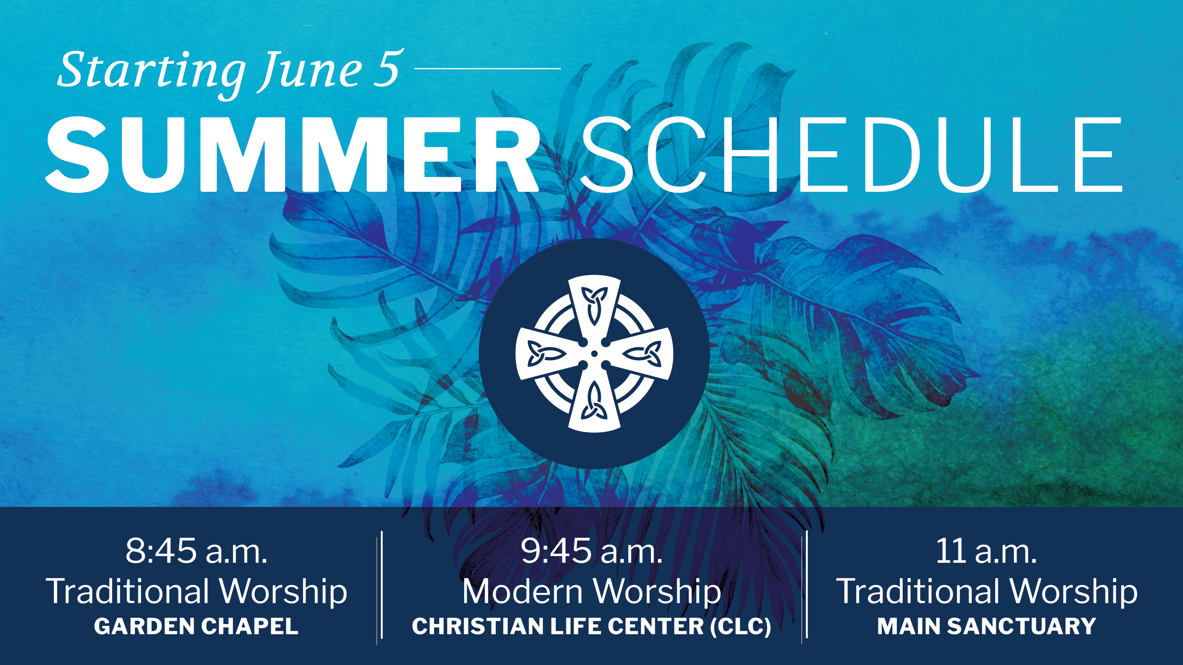 Here is our adjusted summer schedule for Sunday mornings: