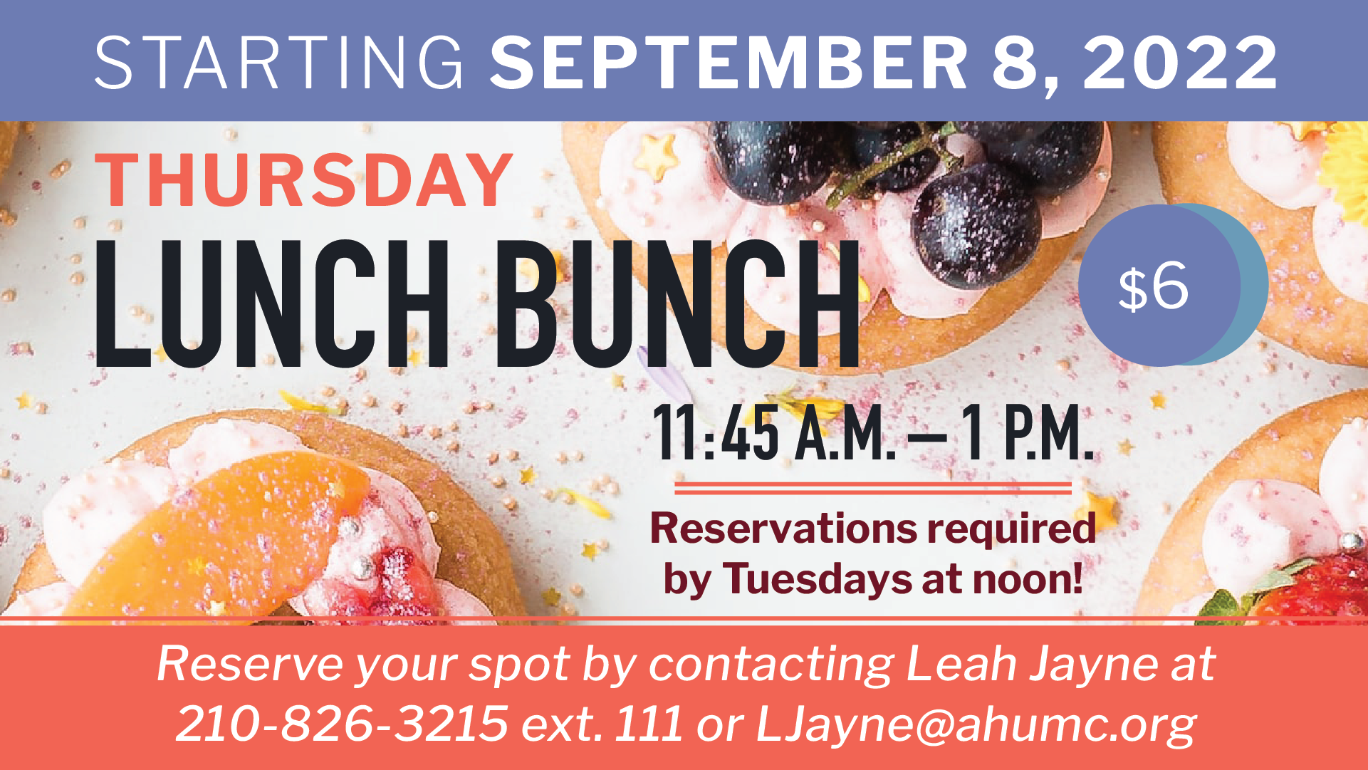 Thursday Lunch Bunch resumes on Thursday, September 8. We hope to see you soon.