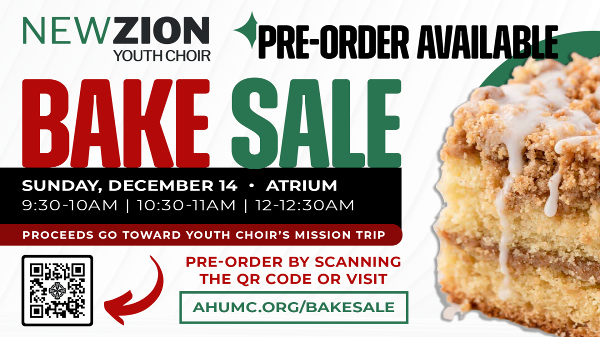 The New Zion Youth Choir will host a bake sale on Sunday, December 14. The group is working to raise funds for their annual summer mission trip.