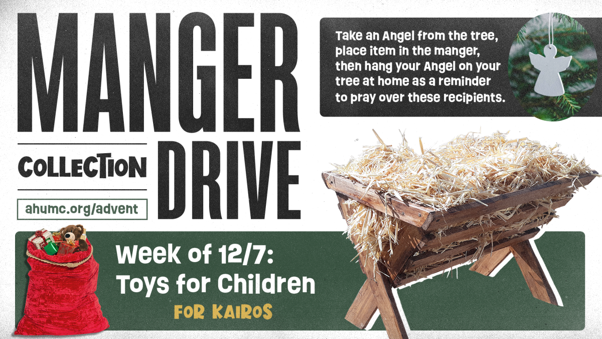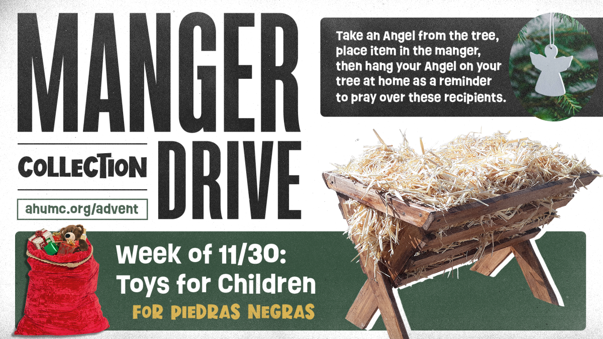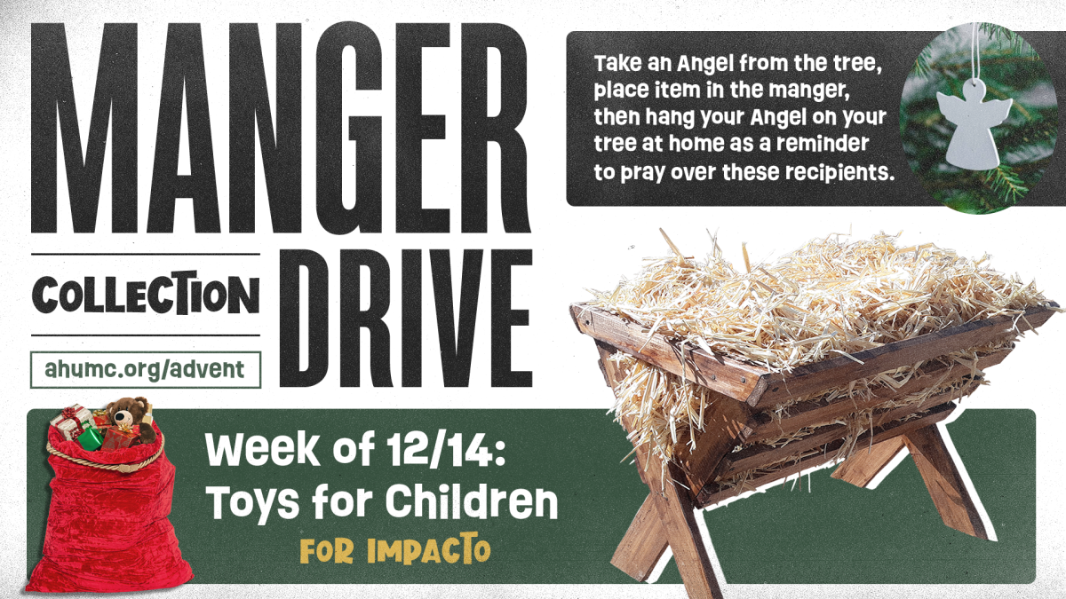Donations can be left in any of the mangers from Sunday, November 30 through Saturday, December 6. Mangers will be located in the Atrium, Christian Life Center, and Sanctuary.