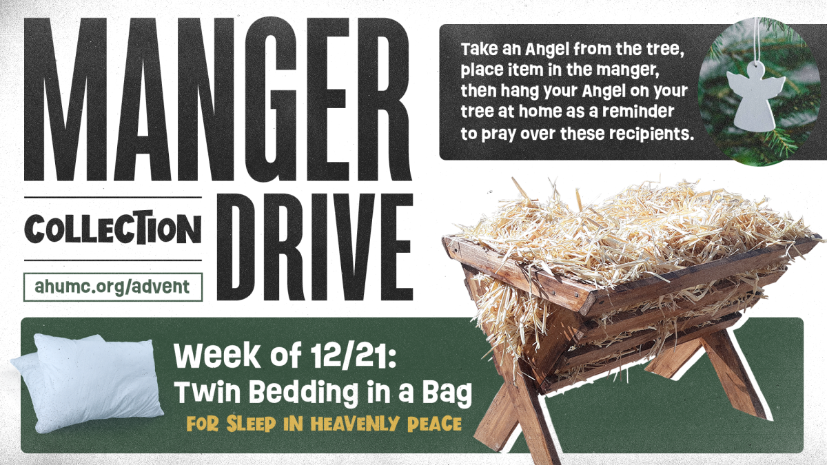 Donations can be left in any of the mangers from Sunday, December 21 through Sunday, December 28. Mangers will be located in the Atrium, Christian Life Center, and Sanctuary.