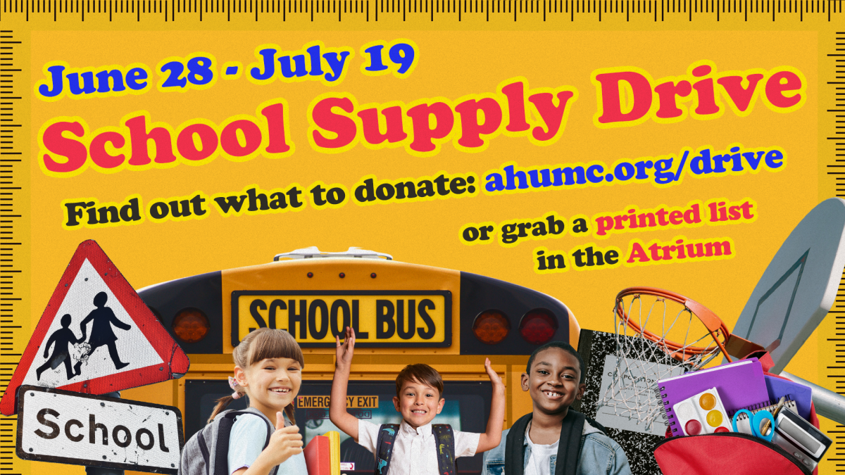 Our Annual AHUMC School Supply Drive is here, and we need your help to make this year's drive a successful one.