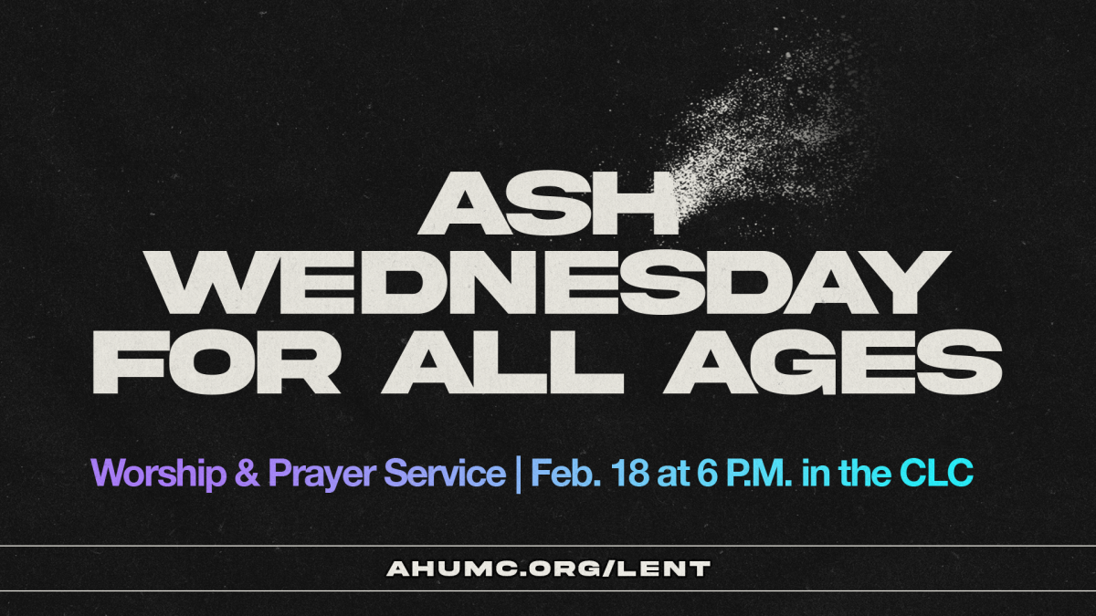 Join us at 6 p.m. in the CLC for this new Ash Wednesday service for all ages. This service will include experiences for everyone—including the kids.