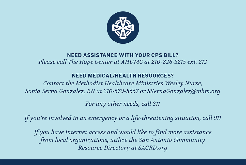 please stop by the front desk in the Atrium of Alamo Heights United Methodist Church.