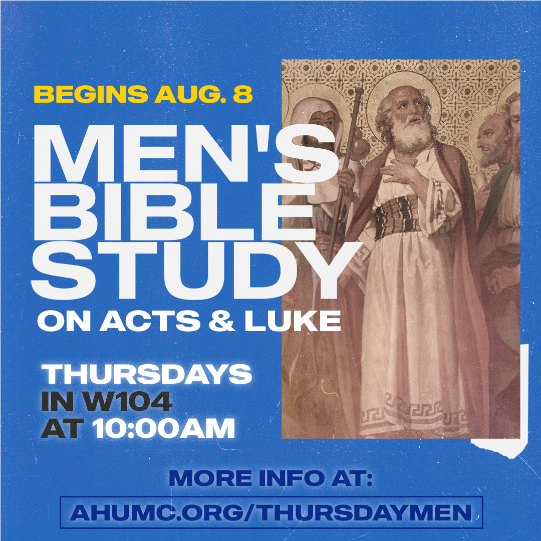 The Thursday Morning Men's Bible Study will resume on January 2 in W104 with a new study on the books of Luke and Acts.