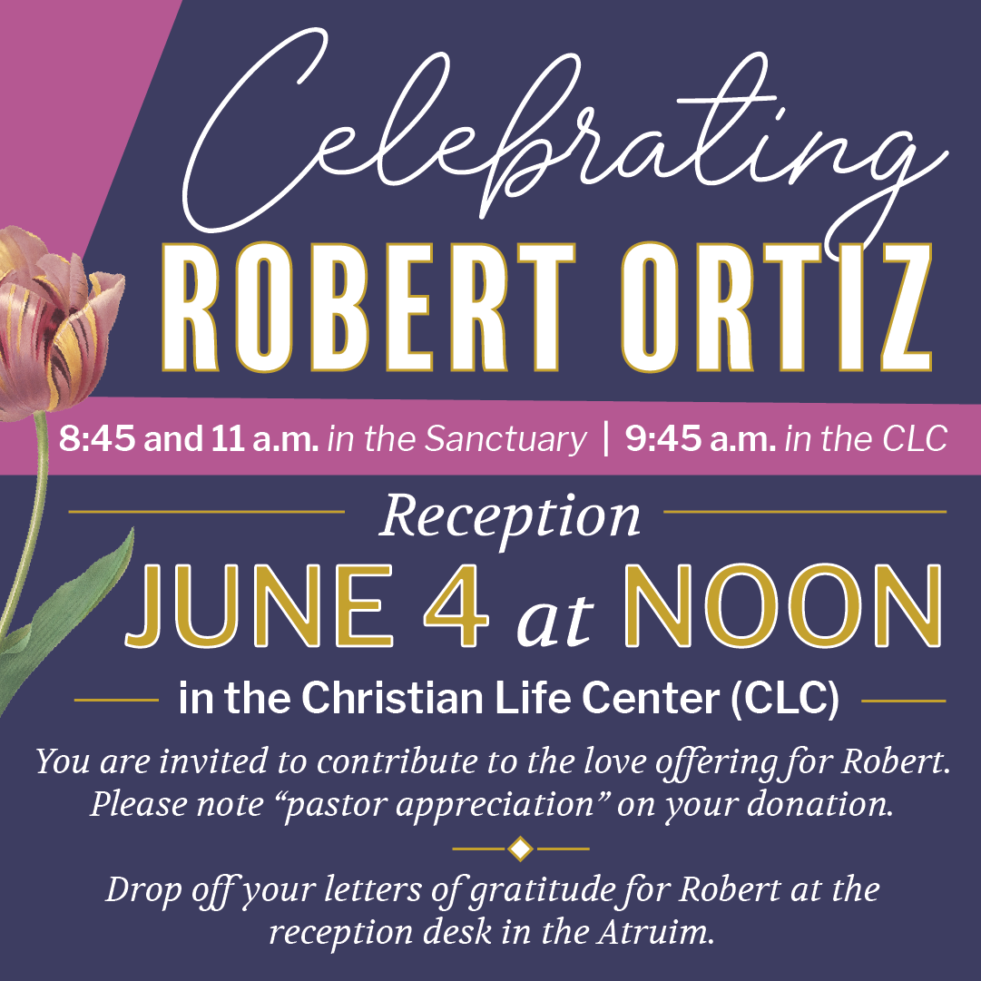 June 4th will be Pastor Robert Ortiz's last Sunday at AHUMC. To celebrate his time served with us, the church will host a reception for him after the 11 a.m. service on that day, and all are invited!